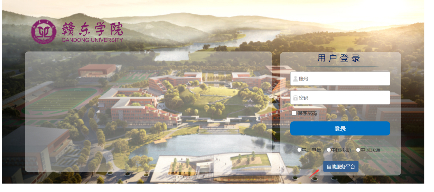 自助服务平台登陆:输入学号和密码登陆自助服务平台