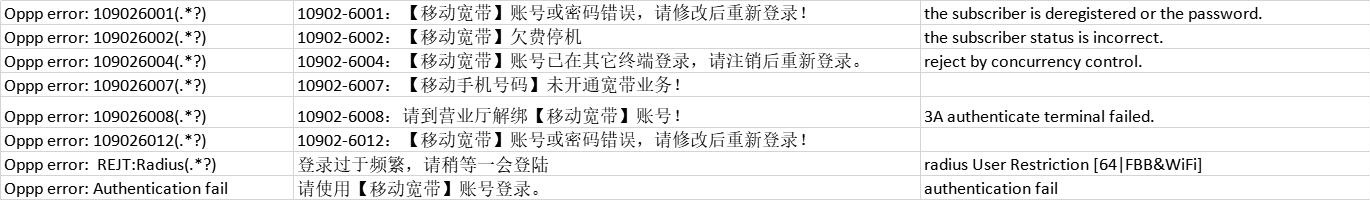failure_cause | 006 | [code 006]非指定拨号客户端上网跳转/限制授权 |